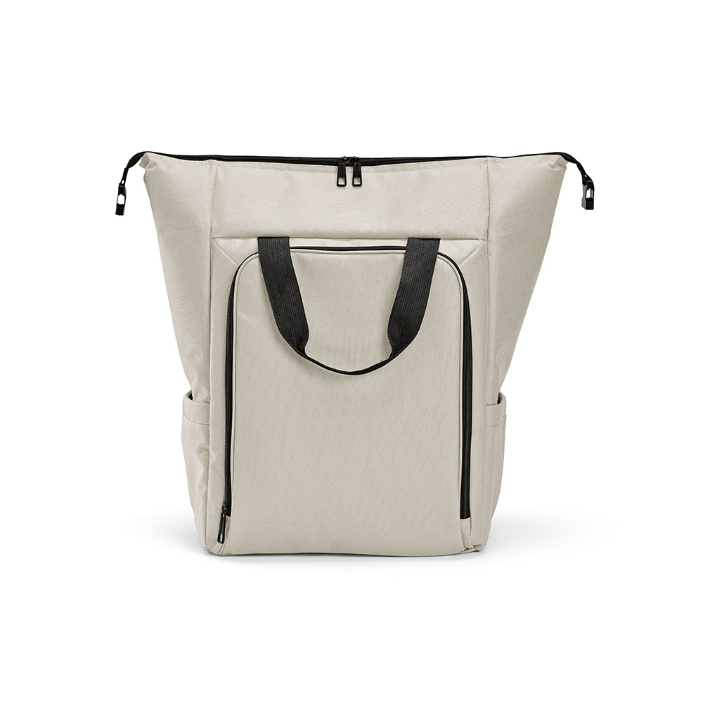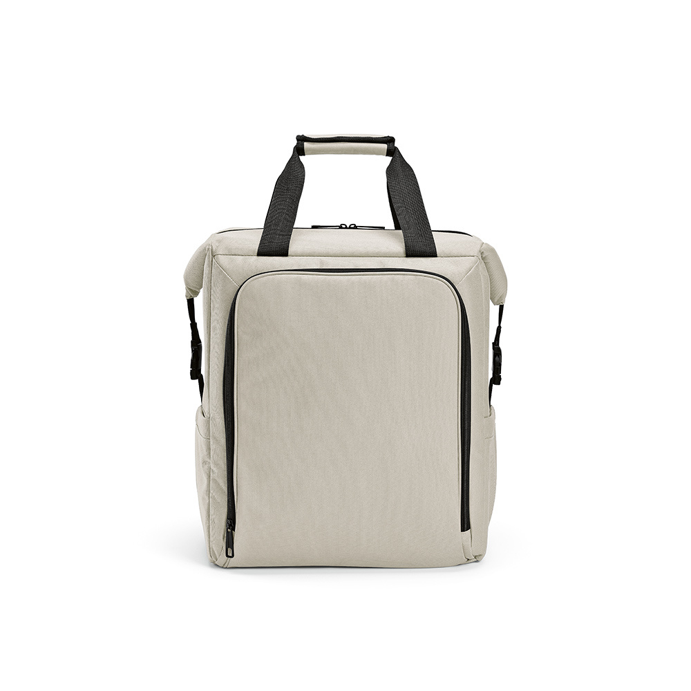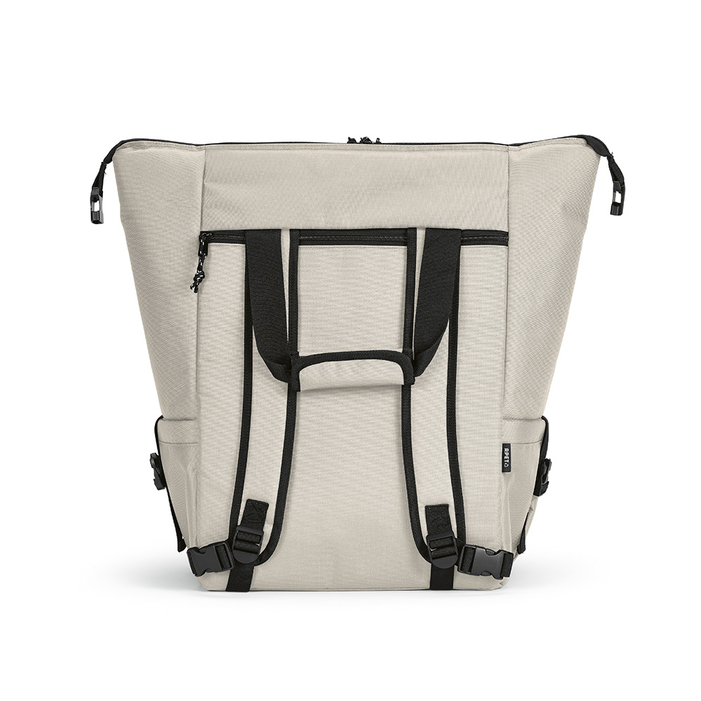 Wzbogać swoje doświadczenie dzięki naszemu wszechstronnemu plecakowi chłodzącemu o pojemności 28 litrów. Wykonany z rPET, z dużą kieszenią przednią i dwiema kieszeniami bocznymi. Duża komora gwarantuje dużą pojemność. Przechowuj napoje w chłodzie i ciesz się łatwym czyszczeniem.