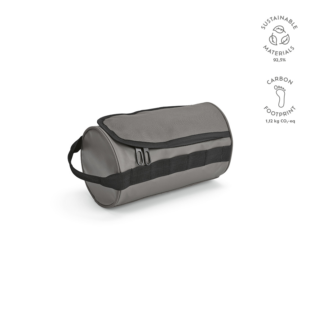 Podróżuj w sposób zrównoważony z naszą poliestrową kosmetyczką z recyklingu (5,7L). Wykonana z materiału 600D rPET w 2 różnych wersjach. Wodoodporny materiał chroni niezbędne rzeczy, a dwustronny zamek błyskawiczny zapewnia łatwy dostęp do kieszeni w kształcie litery U. Pętla do zawieszania zwiększa wygodę.
