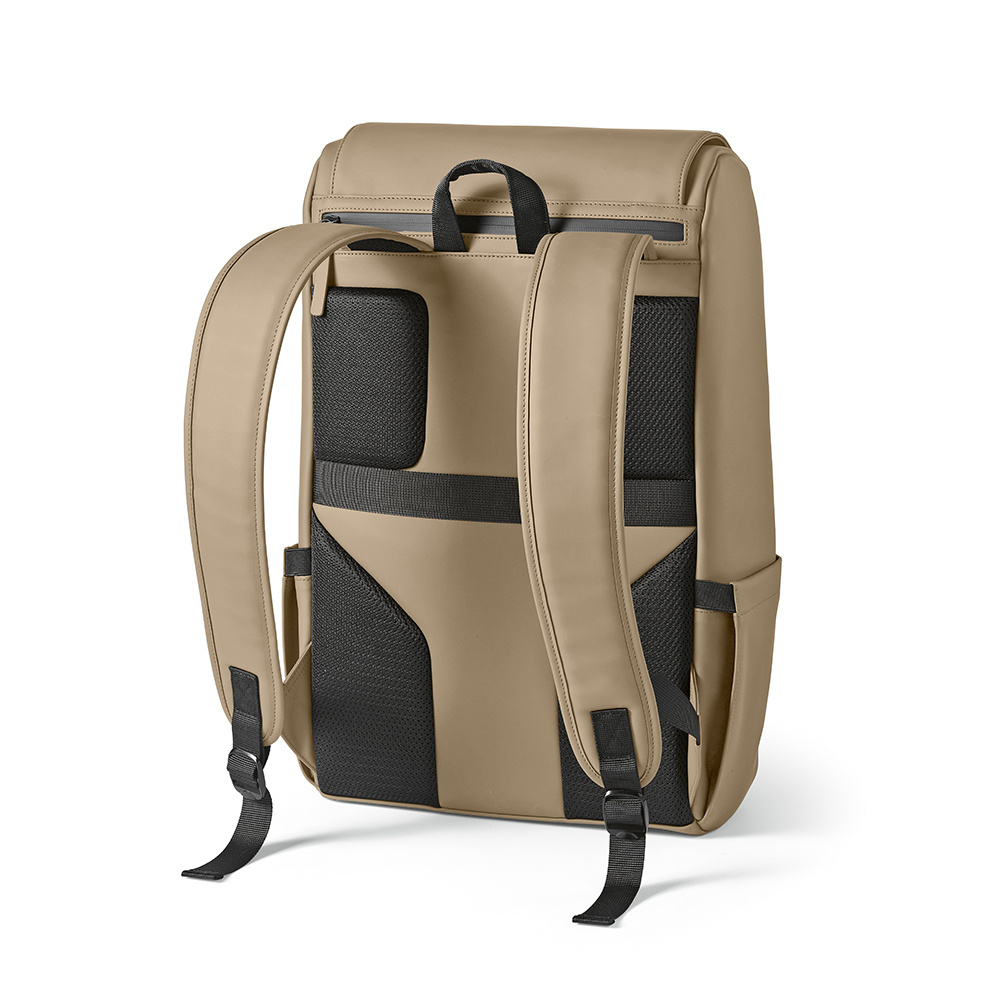 Ten 20-litrowy plecak jest wykonany z poliuretanu pochodzącego z recyklingu, dzięki czemu jest przestronny i trwały. Posiada górną komorę, przednią komorę i wyściełany rękaw na laptopa (15.6") z tyłu: wszystkie dostępne osobno. Dwie boczne kieszenie i wyściełane paski zwiększają komfort noszenia.