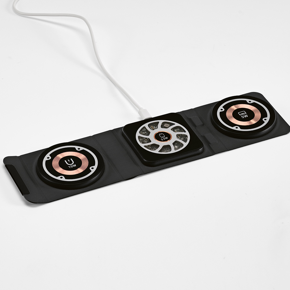 Ekologiczna przyszłość z produktem rPU. Ta bezprzewodowa ładowarka oferuje połączenie trzech mocy ładowania: 15 W dla szybkiego ładowania, 5 W dla stałej mocy i dodatkowe 2,5 W mocy wyjściowej. Dodatkową wygodę zapewnia port USB-C. Dostarczana z kolorowym kablem (dostępnym w kolorze białym lub czarnym) o długości 1 metra.