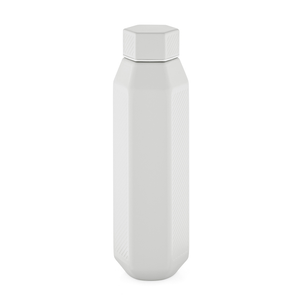 Zanurz się w niezwykłości z naszą sześciokątną butelką o pojemności 530 ml (500 ml netto) z recyklingu stali nierdzewnej o podwójnych ściankach. To nie tylko butelka; to deklaracja stylu i zrównoważonego rozwoju. Dwa gładkie panele umożliwiają personalizację. Odkryj na nowo swoją przygodę z nawodnieniem.