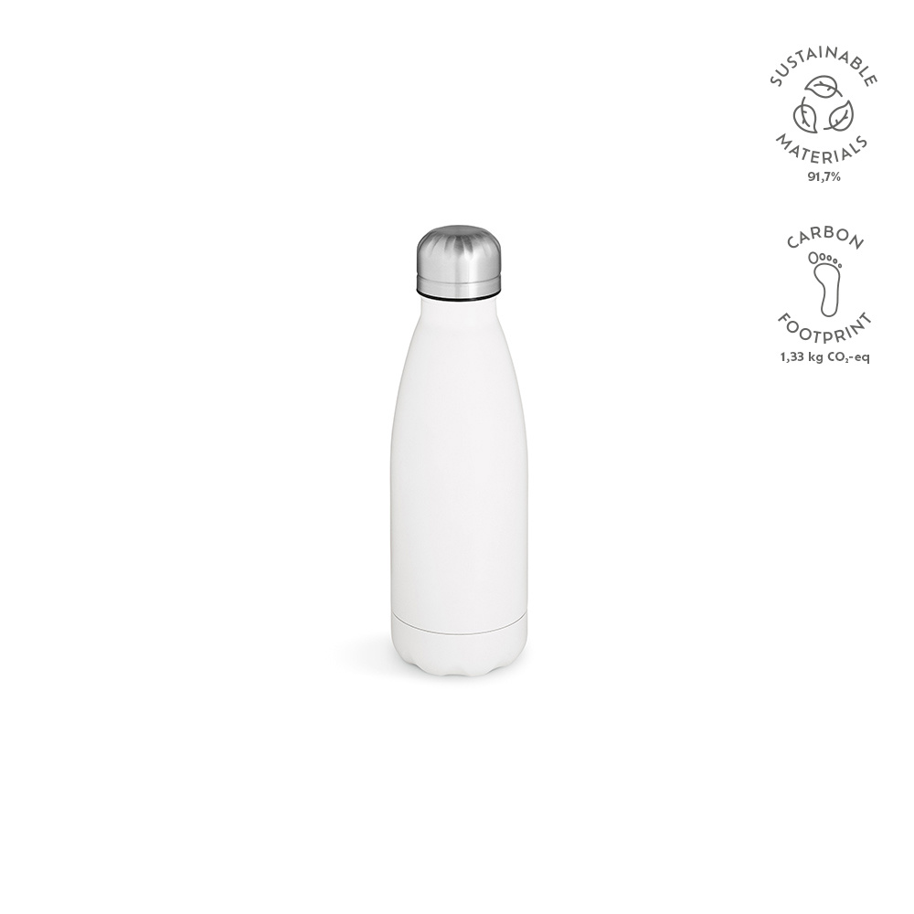 Ta pochodząca z recyklingu butelka ze stali nierdzewnej o pojemności 430 ml (400 ml netto) zachwyca matowym, pełnokolorowym urokiem, a przy tym jest odporna na mycie w zmywarce i przeciekanie. Konstrukcja z podwójnymi ściankami dodaje jej użyteczności. Wyróżnij się, popijając napój w sposób przyjazny dla środowiska.