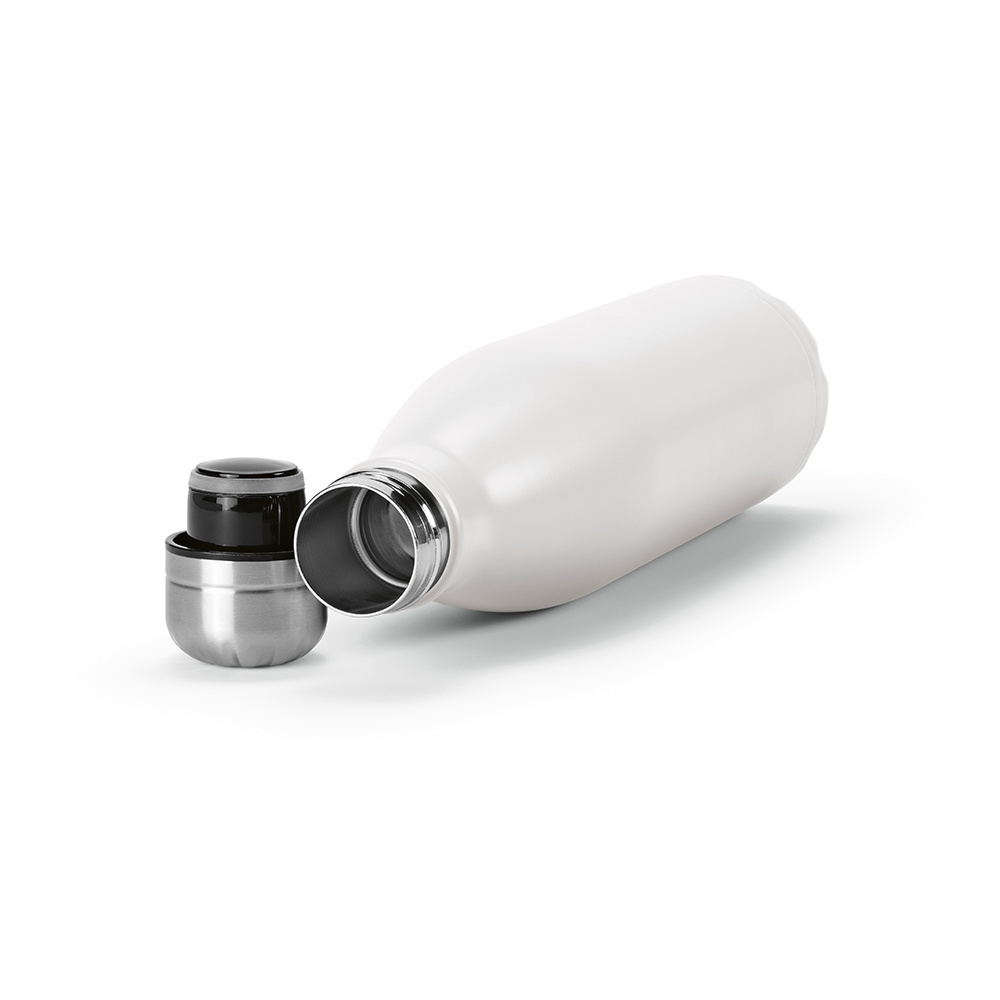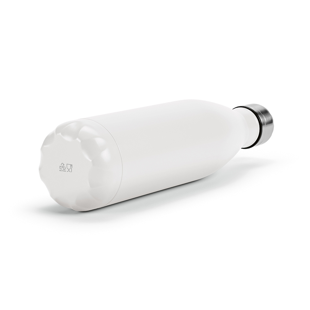 Pozostań orzeźwiony dzięki naszej butelce z recyklingowanej stali nierdzewnej o pojemności 810 ml (770 ml netto) z matowym korpusem. Wygodę zapewnia możliwość mycia w zmywarce i szczelność, a także podwójne ścianki.