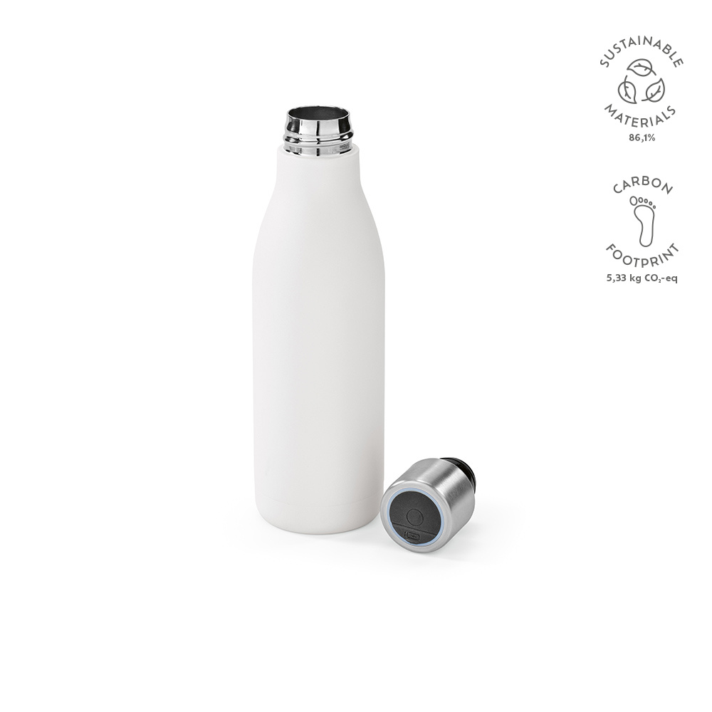 Nasza butelka z recyklingowanej stali nierdzewnej o pojemności 550 ml (500 ml netto) zapewnia orzeźwienie, jest ekologiczna i zaawansowana technologicznie. Jest ona dwuścienna i posiada funkcję samooczyszczania UV. Przygotuj wodę do picia w 3 minuty.