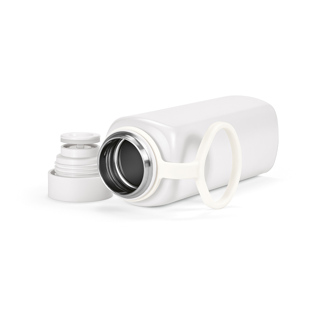 Popijaj stylowo z naszej butelki z recyklingowanej stali nierdzewnej o pojemności 820 ml (750 ml netto). Bez rozlewania, czyste orzeźwienie. Obracaj i pij pod dowolnym kątem dzięki pokrywce 360°. Utrzymuj niską lub wysoką temperaturę dzięki podwójnym ściankom. Kup ją już teraz, aby cieszyć się ekologicznymi łykami.