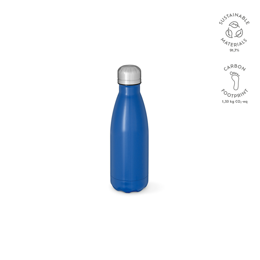 Ta pochodząca z recyklingu butelka ze stali nierdzewnej o pojemności 430 ml (400 ml netto) zachwyca matowym, pełnokolorowym urokiem, a przy tym jest odporna na mycie w zmywarce i przeciekanie. Konstrukcja z podwójnymi ściankami dodaje jej użyteczności. Wyróżnij się, popijając napój w sposób przyjazny dla środowiska.