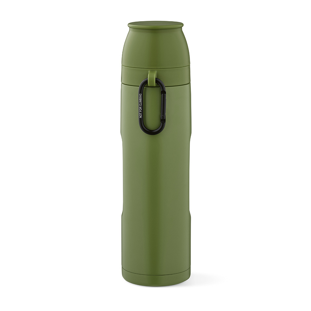 Termos o pojemności 1080 ml (1000 ml netto) jest wykonany z recyklingowanej stali nierdzewnej, ma ergonomiczną konstrukcję i karabińczyk ułatwiający transport. Dwuścienna izolacja próżniowa sprawia, że idealnie nadaje się do wszelkich aktywności na świeżym powietrzu. Pożegnaj się z wyciekami i kłopotami.