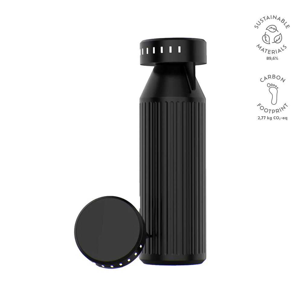 Pozostań nawodniony i na dobrej drodze dzięki naszej dwuściennej butelce ze stali nierdzewnej z recyklingu o pojemności 690 ml (650 ml netto). Dwuścienna i przyjazna dla środowiska butelka przypomina o piciu co 30 minut za pomocą wskaźników LED. Nawodnienie łączy się z innowacją.