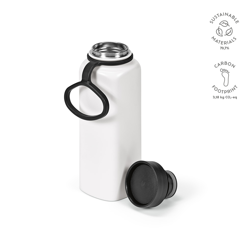 Popijaj stylowo z naszej butelki z recyklingowanej stali nierdzewnej o pojemności 820 ml (750 ml netto). Bez rozlewania, czyste orzeźwienie. Obracaj i pij pod dowolnym kątem dzięki pokrywce 360°. Utrzymuj niską lub wysoką temperaturę dzięki podwójnym ściankom. Kup ją już teraz, aby cieszyć się ekologicznymi łykami.