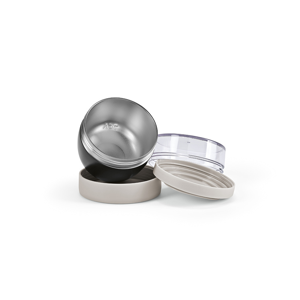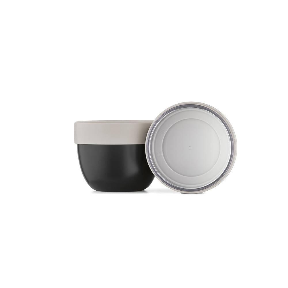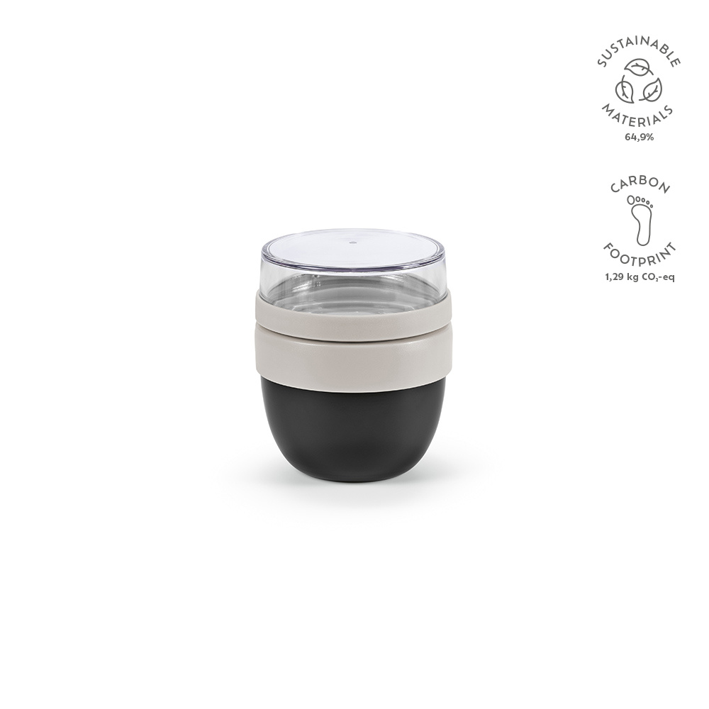 Ten pojemnik na żywność to eko-duet: 350 ml (260 ml netto) stali nierdzewnej pochodzącej z recyklingu i 230 ml (110 ml netto) plastikowej, przezroczystej pokrywki. Urok podwójnych ścianek, owalny wdzięk. Nie rozlewa się, ponieważ jest szczelny. Idealna kombinacja do jogurtu i granoli.