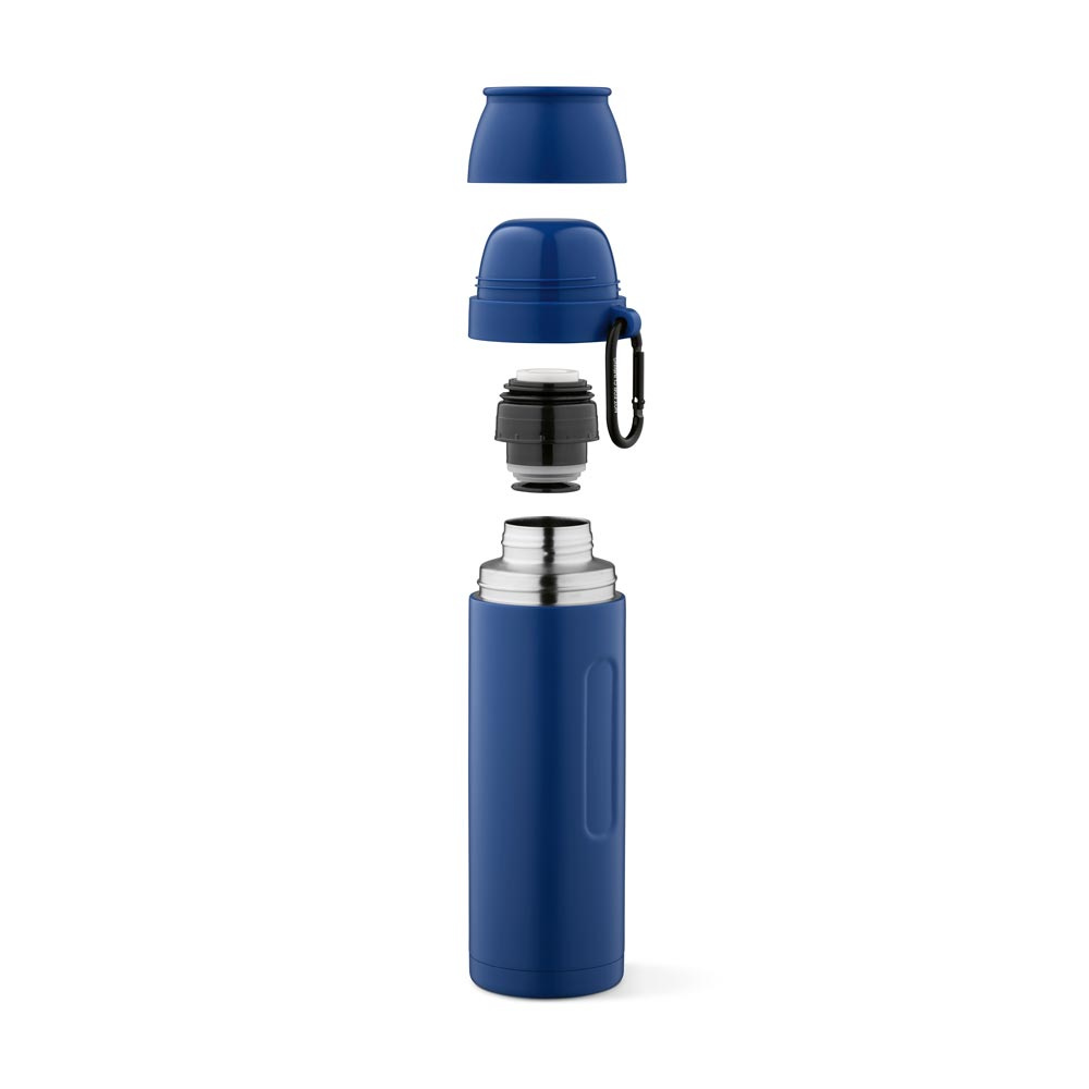 Ten termos o pojemnosci 810 ml (750 ml netto) z recyklingowanej stali nierdzewnej posiada karabinczyk ulatwiajacy transport. Izolacja o podwójnych sciankach utrzymuje napoje idealnie gorace lub zimne. W pracy i w podrózy, kazdy lyk to ekologiczna przyjemnosc dzieki 2 kubkom (19cl i 22cl) i ergonomicznemu korpusowi.