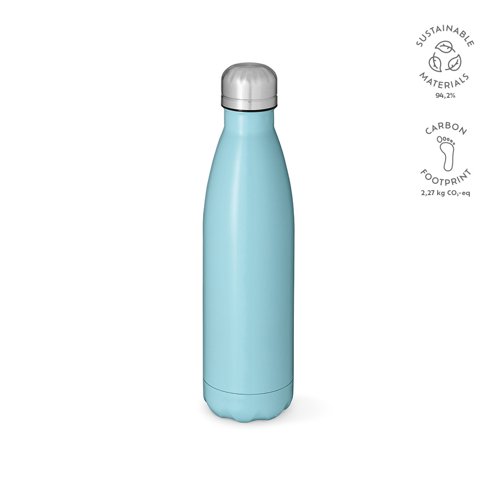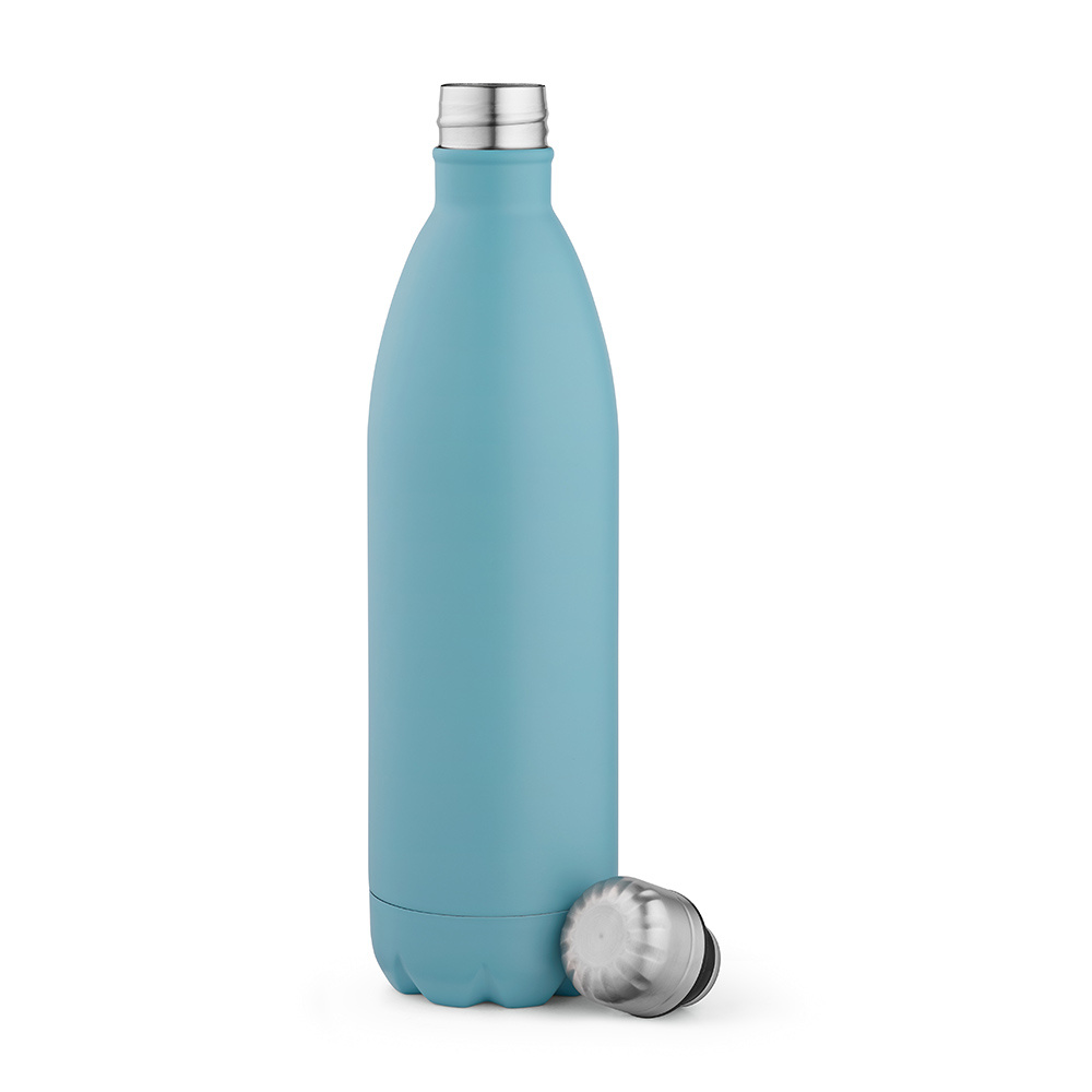 Butelka z recyklingowanej stali nierdzewnej o pojemności 1100 ml (1070 ml netto) jest matowa. Jest przyjazna dla środowiska i można ją myć w zmywarce. Jej szczelna konstrukcja zapewnia brak zmartwień, a podwójne ścianki gwarantują odpowiednią temperaturę napojów.
