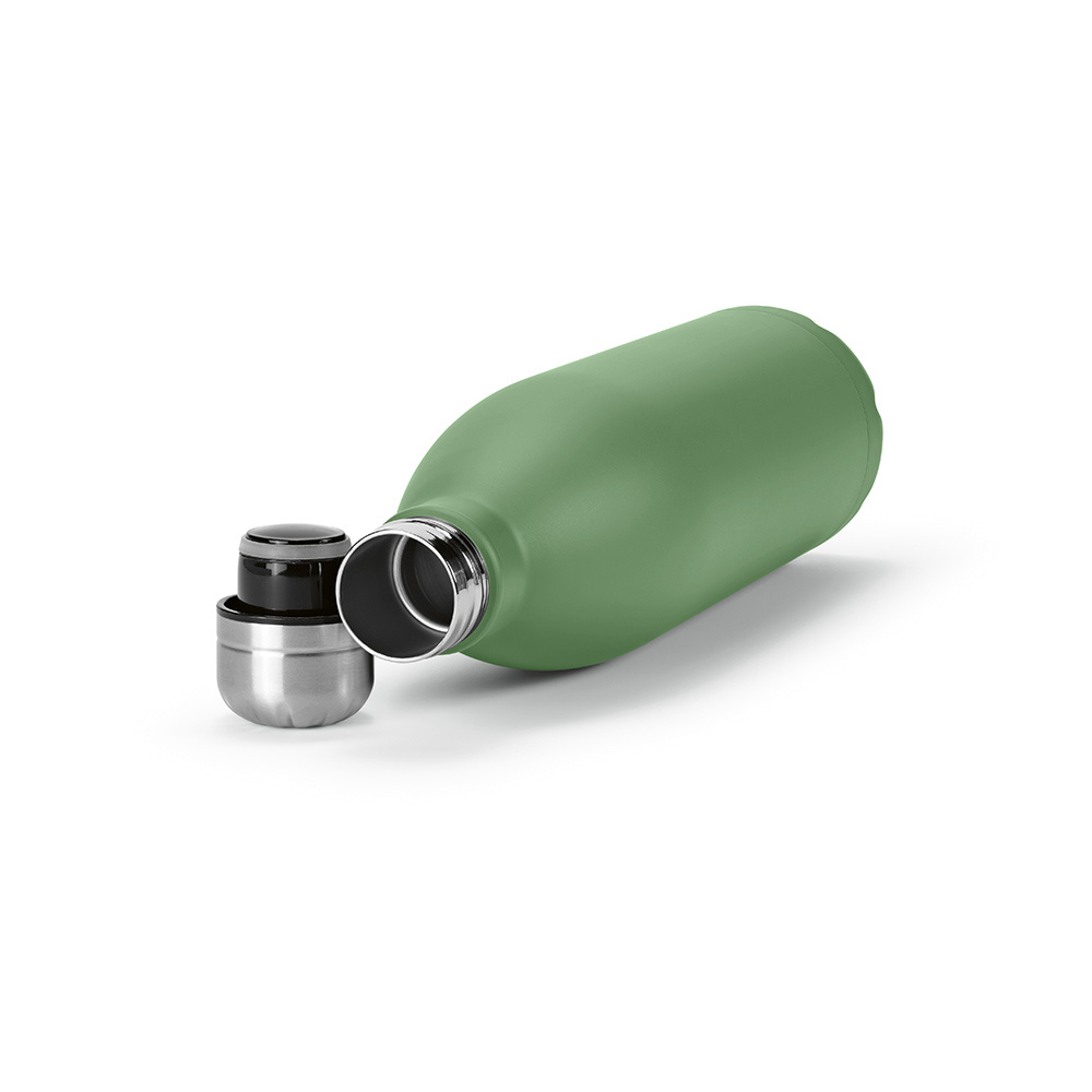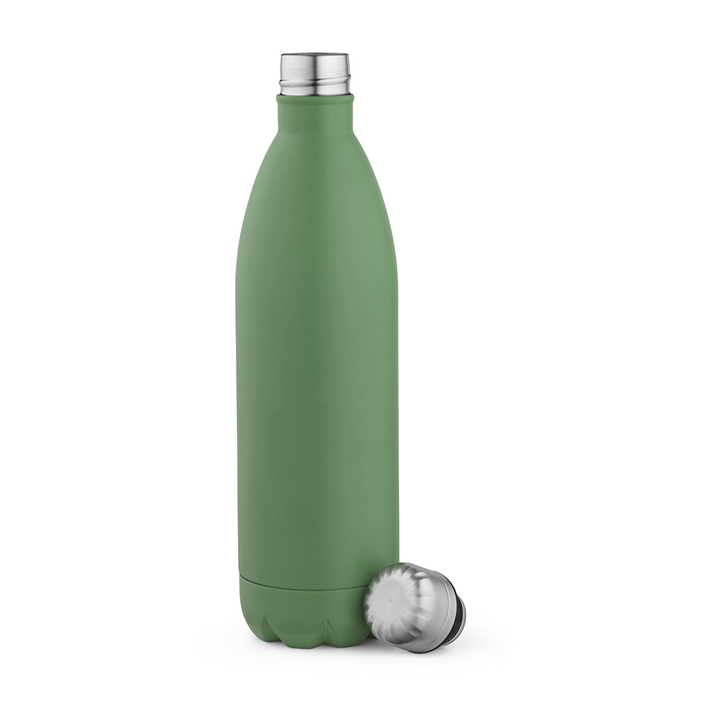 Butelka z recyklingowanej stali nierdzewnej o pojemności 1100 ml (1070 ml netto) jest matowa. Jest przyjazna dla środowiska i można ją myć w zmywarce. Jej szczelna konstrukcja zapewnia brak zmartwień, a podwójne ścianki gwarantują odpowiednią temperaturę napojów.