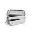 Ten pochodzący z recyklingu pojemnik na lunch z satynowej stali jest wielozadaniowy i ma pojemność 1240 ml (1050 ml netto). Zabezpieczony bocznymi klamrami, pomieści lunch do pracy lub najnowsze danie kulinarne na piknik. Podwójne przegródki zapraszają do degustacji - z jednej strony sushi, z drugiej sałatki.