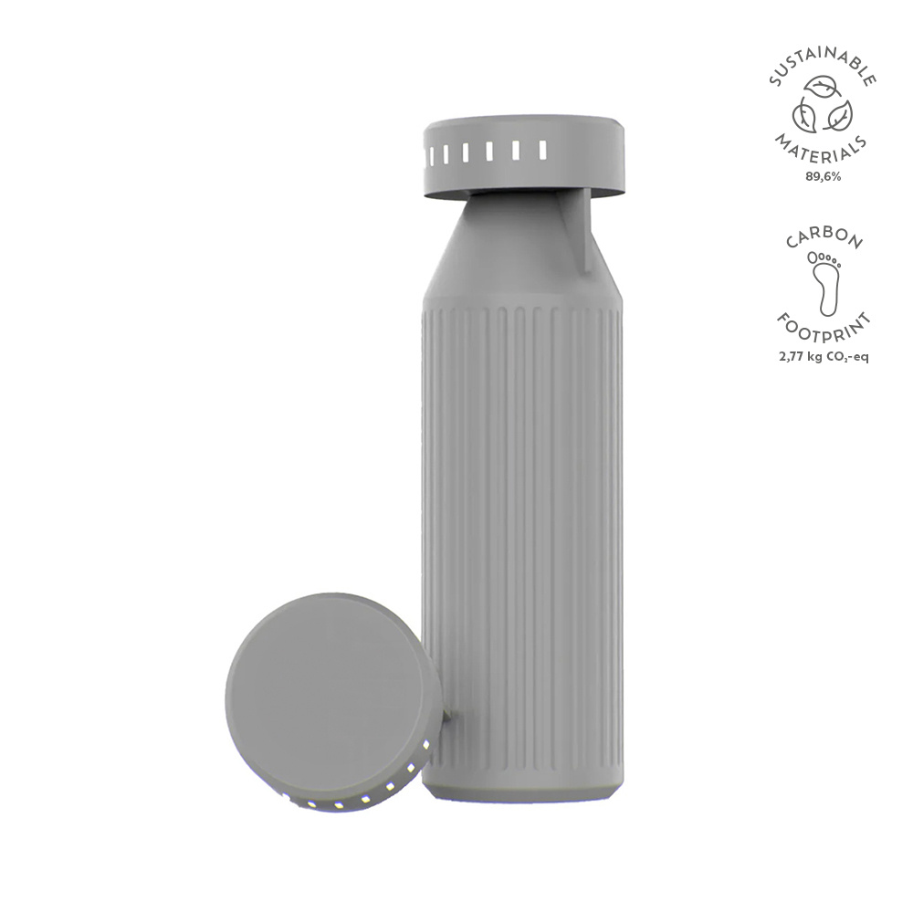 Pozostań nawodniony i na dobrej drodze dzięki naszej dwuściennej butelce ze stali nierdzewnej z recyklingu o pojemności 690 ml (650 ml netto). Dwuścienna i przyjazna dla środowiska butelka przypomina o piciu co 30 minut za pomocą wskaźników LED. Nawodnienie łączy się z innowacją.