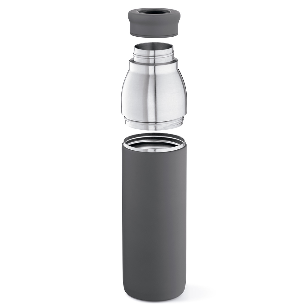Popraw swój poziom nawodnienia dzięki butelce z recyklingowanej stali nierdzewnej o pojemności 760 ml (720 ml netto), która łączy w sobie styl i funkcjonalność. Wyposażona w 2 różne pokrywki, ta butelka, która przekształca się w kubek podróżny, jest przyjaznym dla środowiska towarzyszem na każdy dzień.