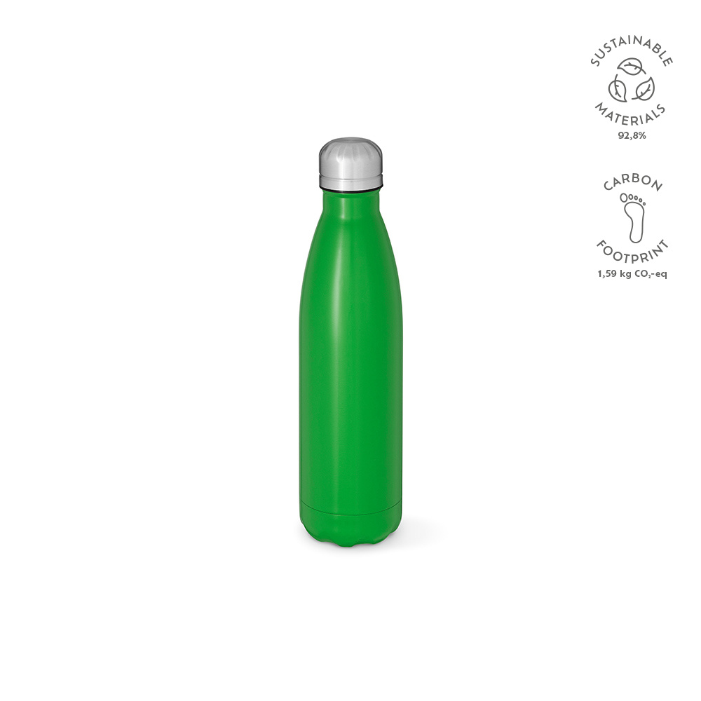 Ekologiczne nawodnienie w najlepszym wydaniu: Nasza butelka z recyklingowanej stali nierdzewnej o pojemności 535 ml (500 ml netto) jest pełna kolorów. Można ją myć w zmywarce, jest szczelna i zaprojektowana z myślą o zrównoważonym rozwoju. Oferuje system próżniowy z podwójnymi ściankami.