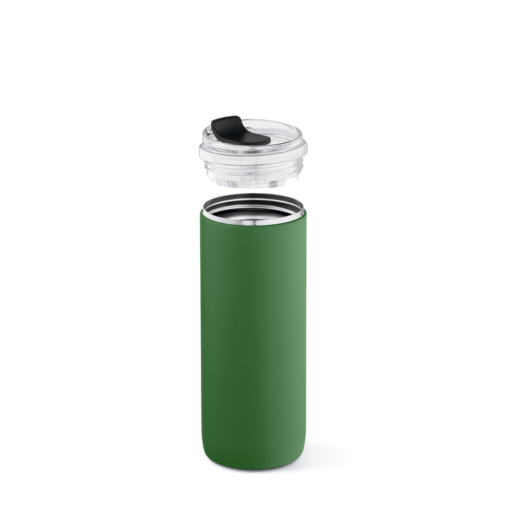 Popraw swój poziom nawodnienia dzięki butelce z recyklingowanej stali nierdzewnej o pojemności 760 ml (720 ml netto), która łączy w sobie styl i funkcjonalność. Wyposażona w 2 różne pokrywki, ta butelka, która przekształca się w kubek podróżny, jest przyjaznym dla środowiska towarzyszem na każdy dzień.