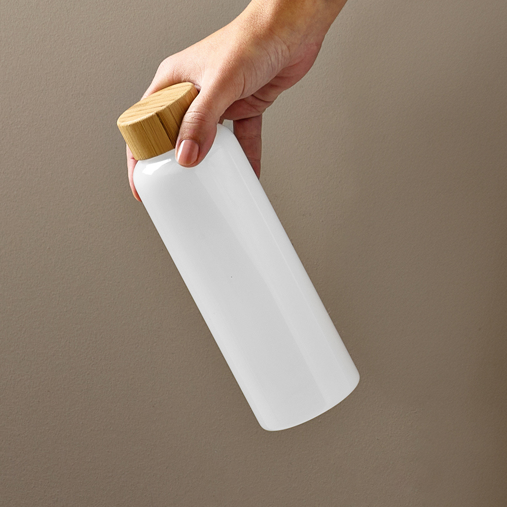 Wyobraź sobie butelkę ze szkła borokrzemowego o pojemności 510 ml (490 ml netto). To nie tylko matowe szkło; to borokrzemian, zapewniający trwałość. Bambusowa pokrywka dodaje naturalnego charakteru. A dzięki szczelnej konstrukcji jest to idealny, stylowy napój do picia w podróży.
