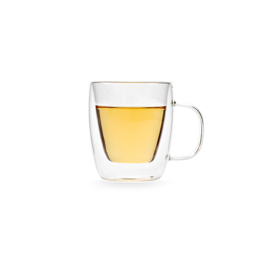 Ten kubek ze szkła borokrzemowego o pojemności 250 ml (220 ml netto) z podwójnymi ściankami zapewnia najlepszą jakość napojów. Idealny dla miłośników kawy, dostarczany w indywidualnym pudełku, gotowy do wzbogacenia codziennych łyków. Odkryj nowy poziom przyjemności!