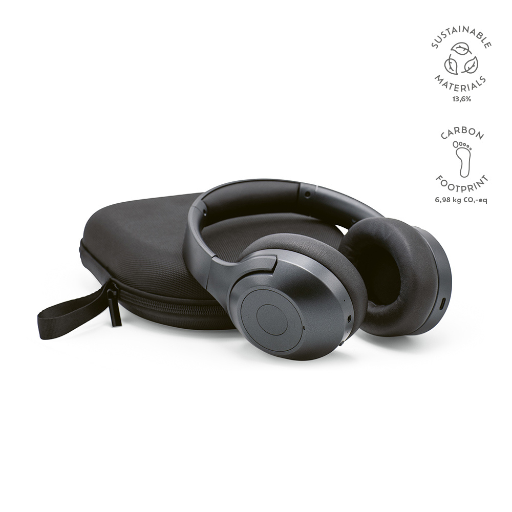 Zanurz się w spokoju dzięki tym słuchawkom z aktywną redukcją szumów. 40-milimetrowe przetworniki i 4 mikrofony oparte na sztucznej inteligencji gwarantują niezrównany dźwięk. W zestawie etui podróżne. Ponad 30 godzin odtwarzania. 2,5-godzinny czas ładowania przez złącze USB-C i pasmo przenoszenia 100-15 kHz. Połączenie bezprzewodowe do 10 m. Starannie wykonane z tworzywa ABS pochodzącego z recyklingu.