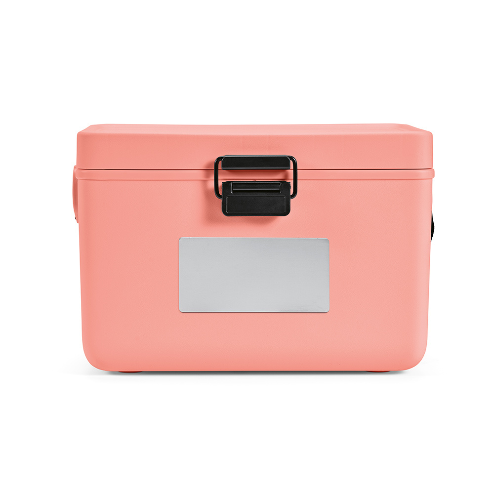 Plastikowa lodówka 12L z recyklingu: Trwała, przyjazna dla środowiska, z poręcznym paskiem transportowym. Dostarczana z tabliczką (14 x 7 cm), na której można umieścić logo. Idealny do chłodzenia napojów w podróży, podczas biwakowania lub na plaży.