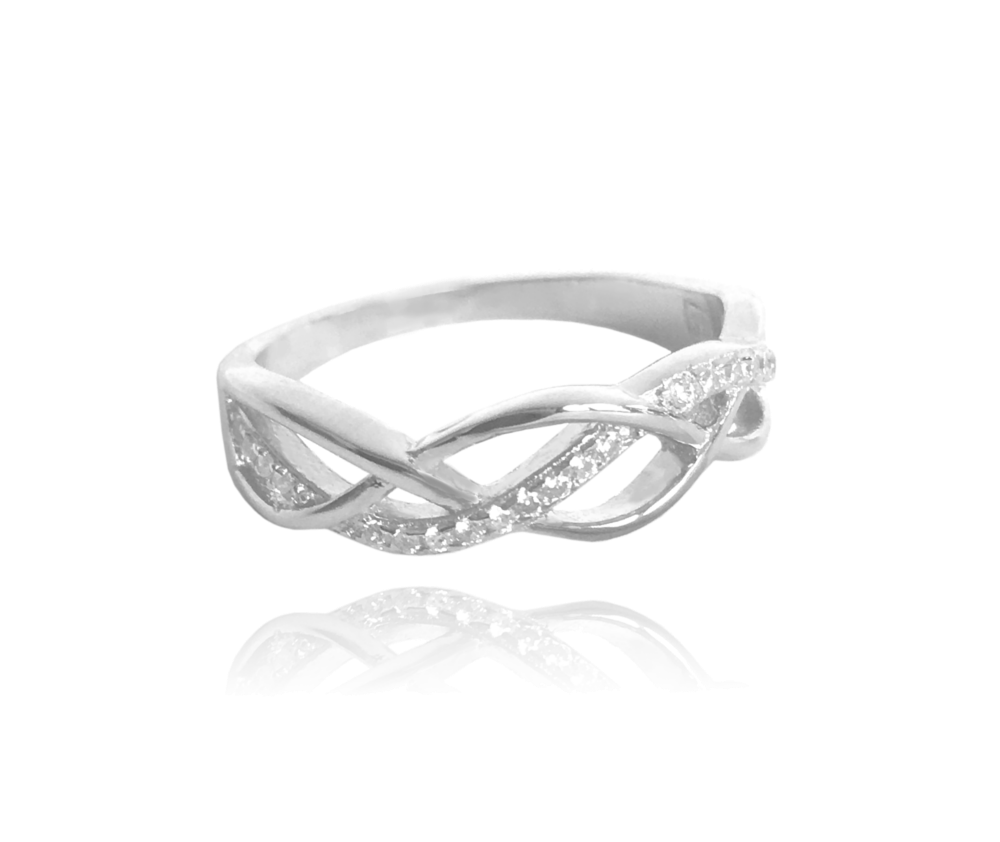 MINET Pierścien srebrny spleciony z białymi cyrkoniami wielkość 17