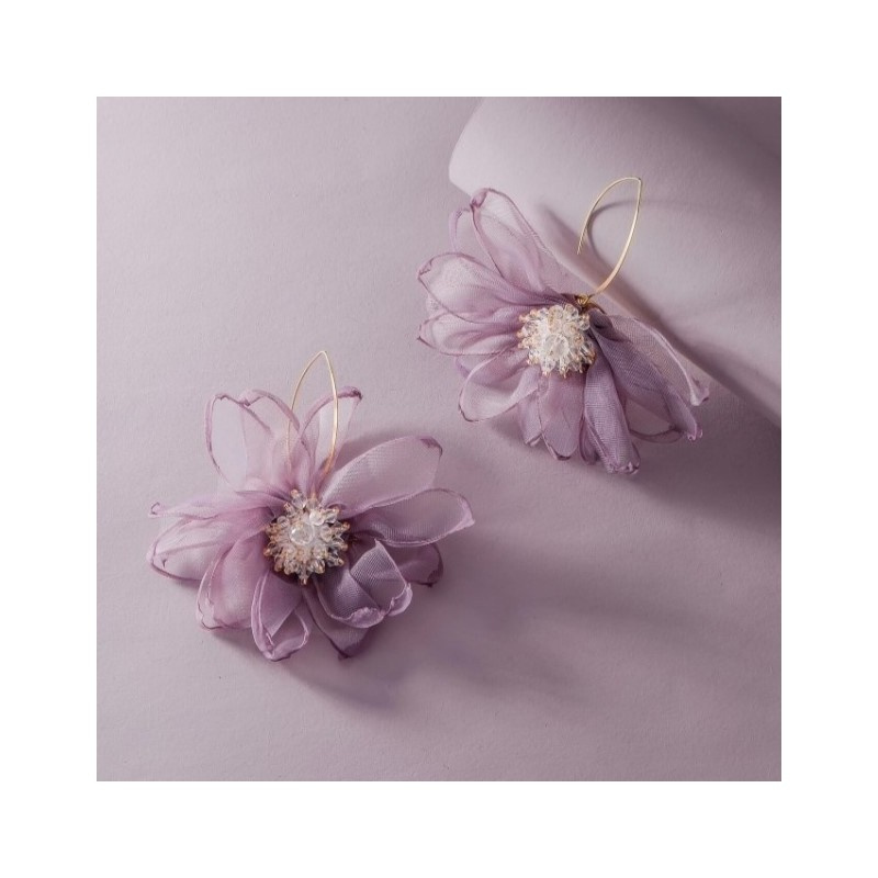 Kolczyki sztuczne tiulowe kwiaty. Będą stanowić piękne uzupełnienie eleganckiej kreacji jak i codziennego stroju. Zapięcie: bigiel Wymiary: 10 x 8cm Głębokość: 1,5 cm Wymiary kartonika: 10 cm x 8 cm Waga: 18g brutto 17 g netto Biżuteria antyalergiczna, nie zawiera niklu ani chromu. Nie moczyć! Unikać kontaktu z wodą ! A wtedy posłuży bardzo długo!