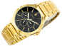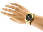 Obudowa zegarka i bransoleta zostały wykonane ze stali nierdzewnej w kolorze złotym, co gwarantuje trwałość i odporność na uszkodzenia mechaniczne. Czarny cyferblat dodaje zegarkowi subtelnej elegancji.