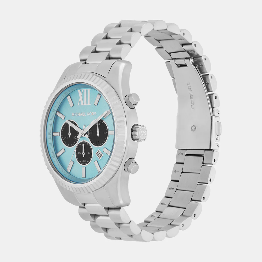 Model Michael Kors MK9165 to elegancki męski zegarek na bransolecie w kolorze srebrnym wykonanej ze stali szlachetnej. Wyposażony jest w precyzyjny mechanizm kwarcowy, dzięki któremu zegarek dokładanie pokazuje aktualną godzinę. Dostępne funkcje to chronograf, datownik dnia miesiąca oraz 24-godzinne wskazanie czasu. Tarczę ochrania mineralne, odporne na zarysowania szkiełko.
