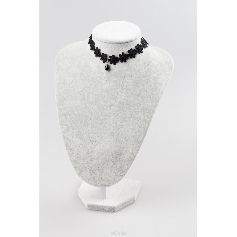 Naszyjnik choker kwiatuszki, z przywieszką, z zapięciem w kolorze srebrnymKlasyczne i proste wzornictwo naszyjnika idealnie podkreśli naturalne piękno i klasę kobiety.Świetnie pasuje do eleganckich, jak również do codziennych stylizacji. Naszyjnik prezentuje się rewelacyjnie!Wykonany jest ze stopów metali nieszlachetnych.Nie są odporne na wodę.Nie zawiera niklu ani chromu.Wymiary:- Długość chokera ok 31 cm- Regulacja 8 cm