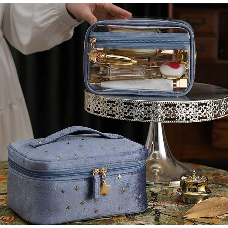 Organizer na kosmetyki / kosmetyczka podróżna 2 w 1 Modny dodatek na podróż - 2 rozkładane kosmetyczki z gwiezdnymi motywami  2 Piękne, damskie rozkładane