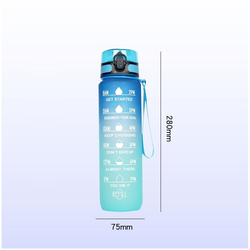 Specyfikacja: - Pojemność: 1000ml (średnica 7,5 cm, wysokość z zawleczką 28 cm), - Materiał: PC + PP + silikon - Bidon ze smyczą. - Duży i wygodny otwór
