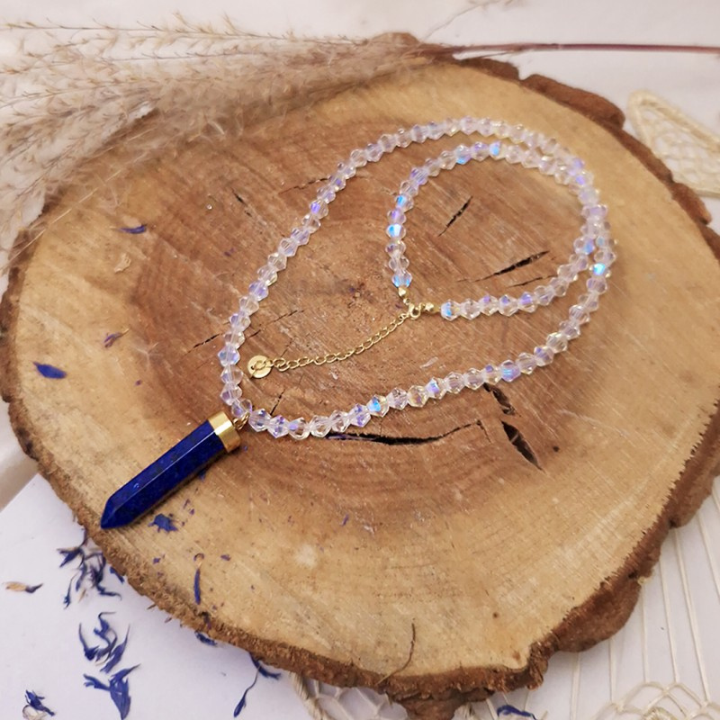 Modny naszyjnik ze stali szlachetnej platerowanej 14 - karatowym złotem z kryształem górskim Świetnie pasuje do eleganckich, jak również do codziennych