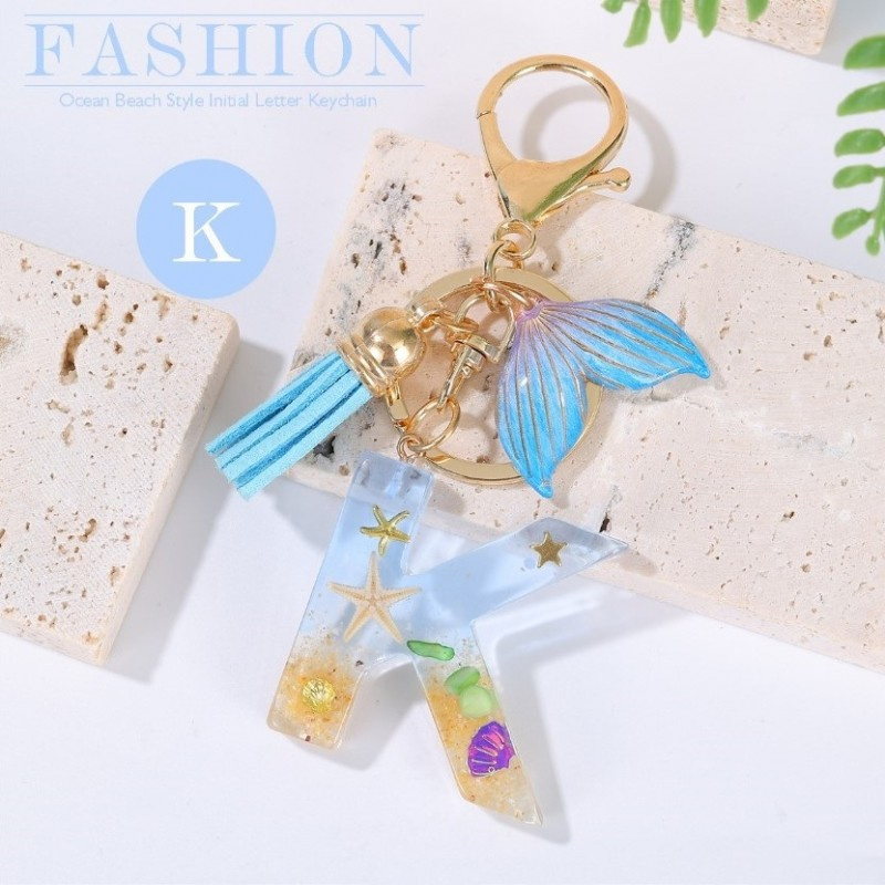 Brelok do kluczy LITERKA "K" , MORSKI, ogon syreny, muszelki, frędzle BRL353K
