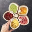 - WYGODNE - W zestawie taca służąca jako podstawka. Taca posiada dedykowane miejsca dla miseczek, dzięki temu podczas przenoszenia nie będą przesuwać się po desce. Miseczki bez tacy nadają się do mycia w zmywarce do naczyń, można ich używać w mikrofalówce.