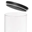 • SOLIDNY - Pojemnik wykonany ze szkła borokrzemowego, które cechuje się dużą odpornością na zmianę temperatur. Pokrywka z drewna bambusowego malowanego na czarno.
