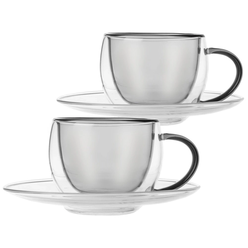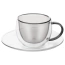 Komplet dwóch filiżanek termicznych z podwójną ścianką w zestawie ze spodkami. Filiżanki mają nowoczesny design i efekt wizualny po wlaniu do nich napojów jest niesamowity. Dzięki podwójnej ściance gorące napoje nie będą nas parzyły w ręce i pozwolą na utrzymanie dłużej ciepłej temperatury, to samo dotyczy chłodnych napojów. Idealne do picia ulubionej kawy espresso. W celu odpowiedniej pielęgnacji, nie zaleca się mycia w zmywarce do naczyń. Filiżanki pakowane są w kartonik, więc są idealnym pomysłem na prezent. Oryginalny produkt czeskiej marki Orion. Wyprodukowano zgodnie z europejskimi standardami.