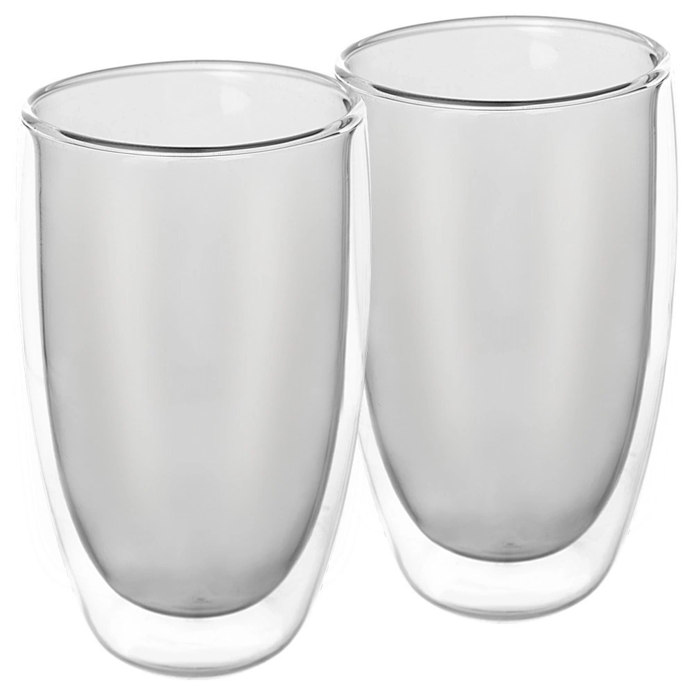- TERMICZNE - Zestaw dwóch szklanek termicznych z podwójną ścianką w nowoczesnym designie. Każda szklanka ma wymiary 8,5 x 14 cm i pojemność maksymalną 460 ml. Szklanka z kolekcji Double.