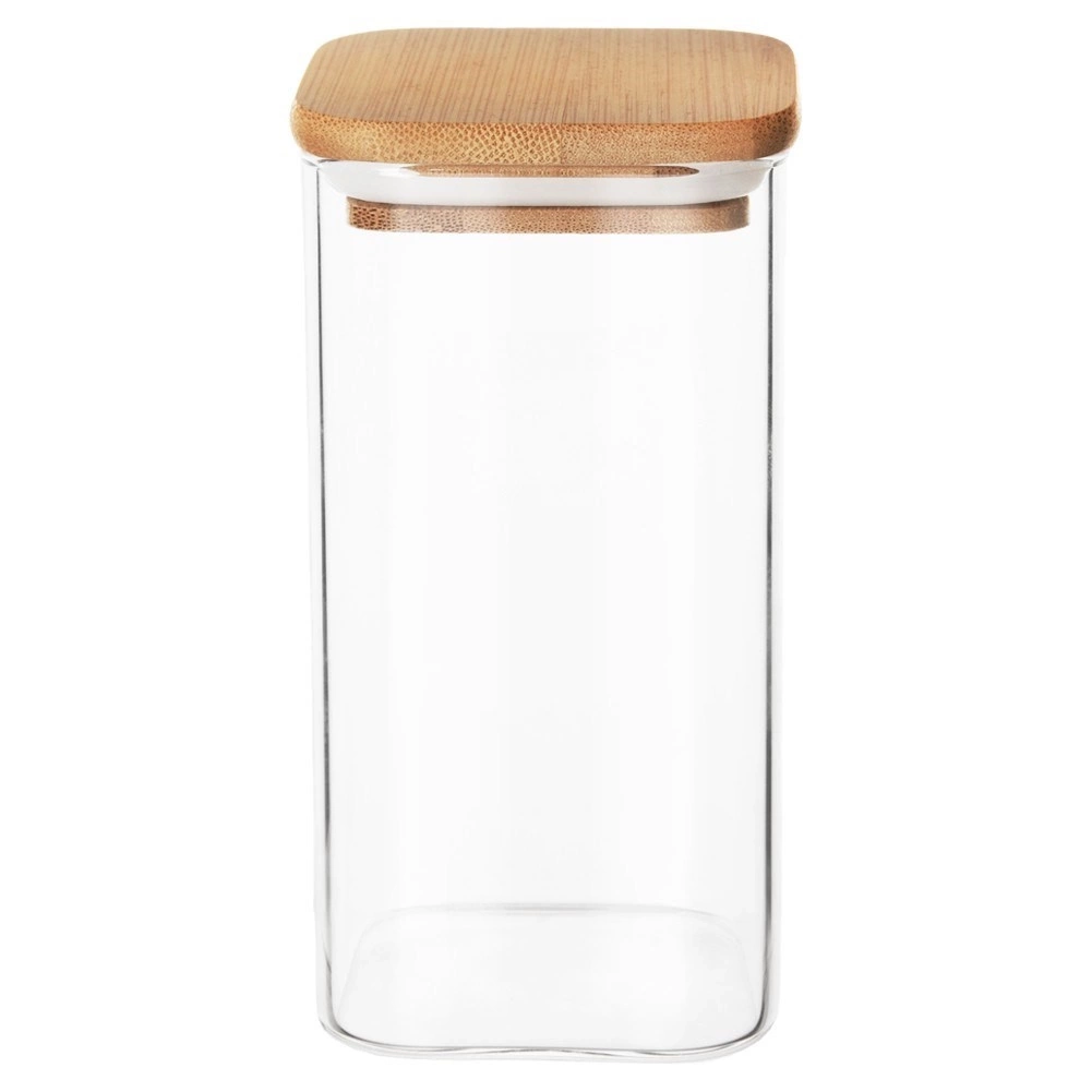 - ODPORNE SZKŁO - Pojemnik wykonany ze szkła borokrzemowego, które cechuje się dużą odpornością na zmianę temperatur. Pokrywka wykonana jest z drewna bambusowego.