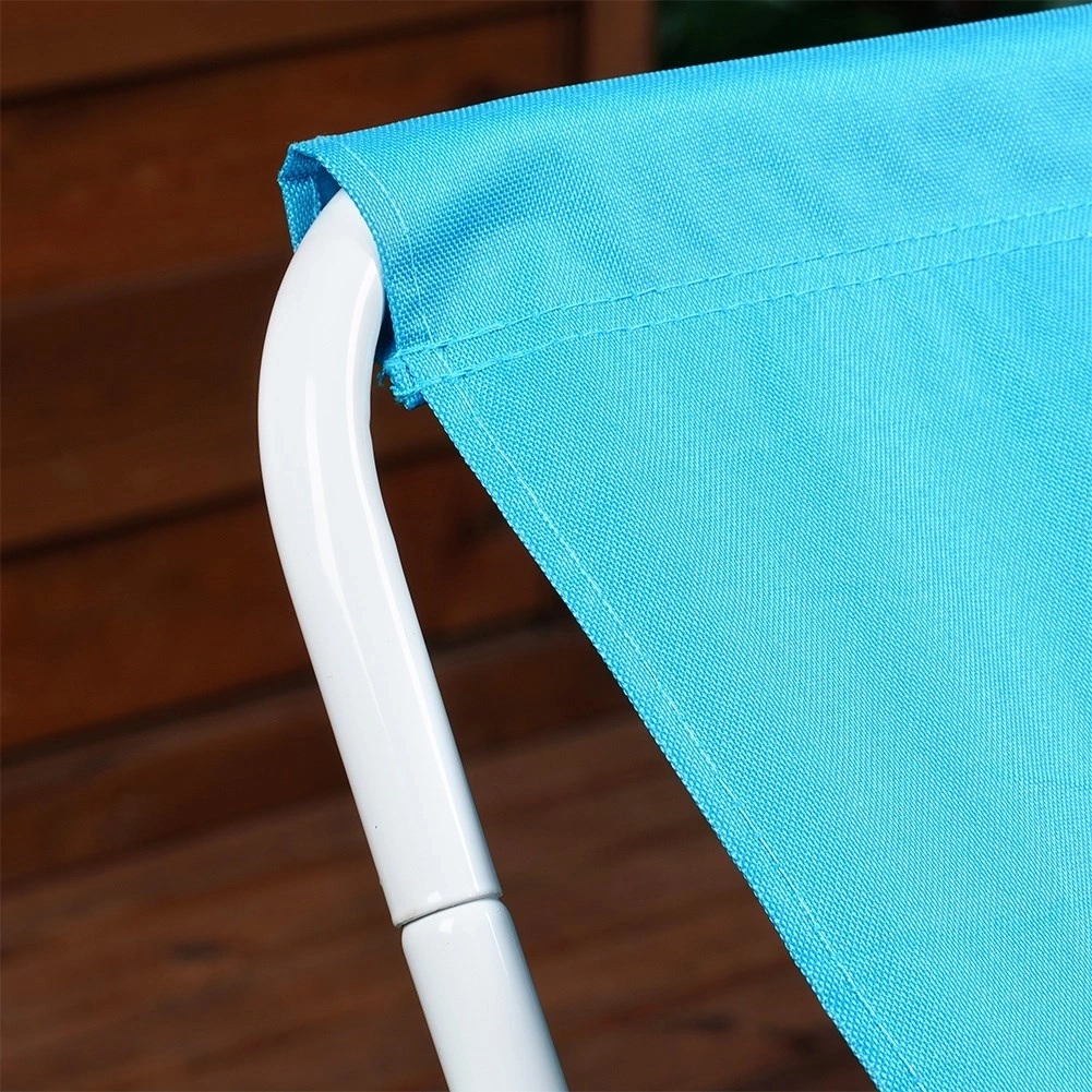 - Metalowa konstrukcja w kolorze białym - Konstrukcja leżaka jest lekka a jednocześnie wytrzymała, wykonana z metalu w kolorze białym. Siedzisko wykonane z odpornej tkaniny poliestrowej w kolorze niebieskim.