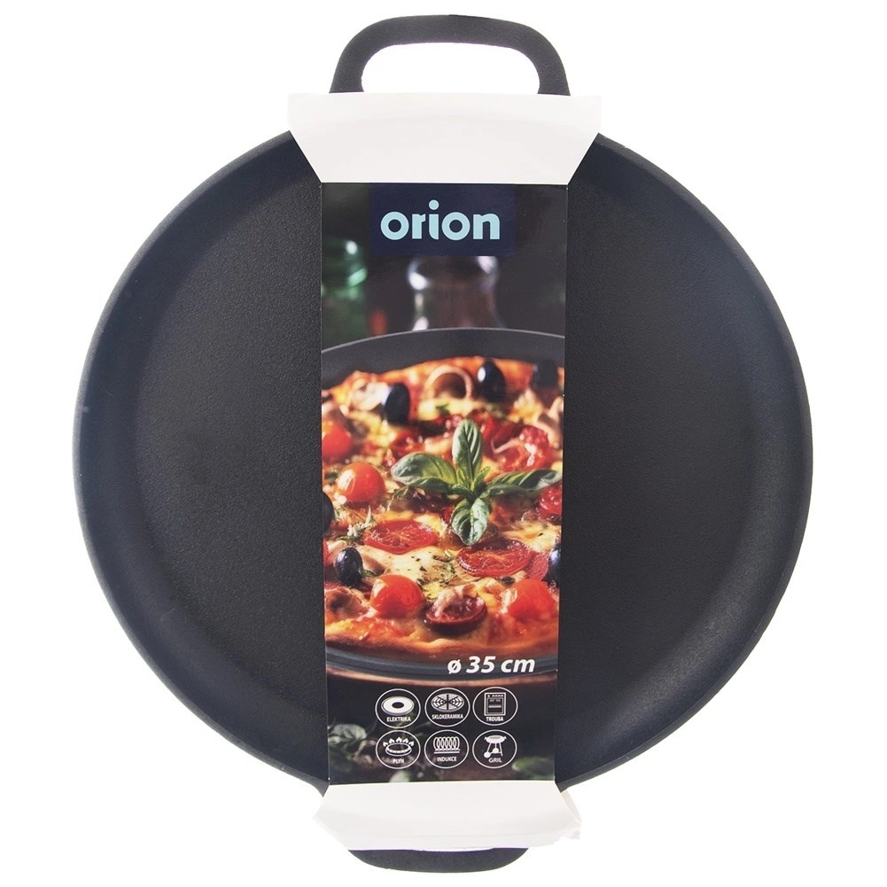Okrągła patelnia żeliwna idealna do przygotowywania różnego rodzaju potraw. Wyposażona w wygodne uchwyty. Patelnia zapewnia szybkie i jednolite smażenie. Możemy użytkować ją w każdej kuchence, ale również bezpośrednio na grillu, czy ogniu. Patelnia jest niezwykle solidna i ciężka. Żeliwo rozgrzewa się równomiernie i długo utrzymuje ciepło, dzięki czemu serwowane dania dłużej będą ciepłe. Oryginalny produkt czeskiej marki Orion. Wyprodukowano zgodnie z europejskimi standardami.