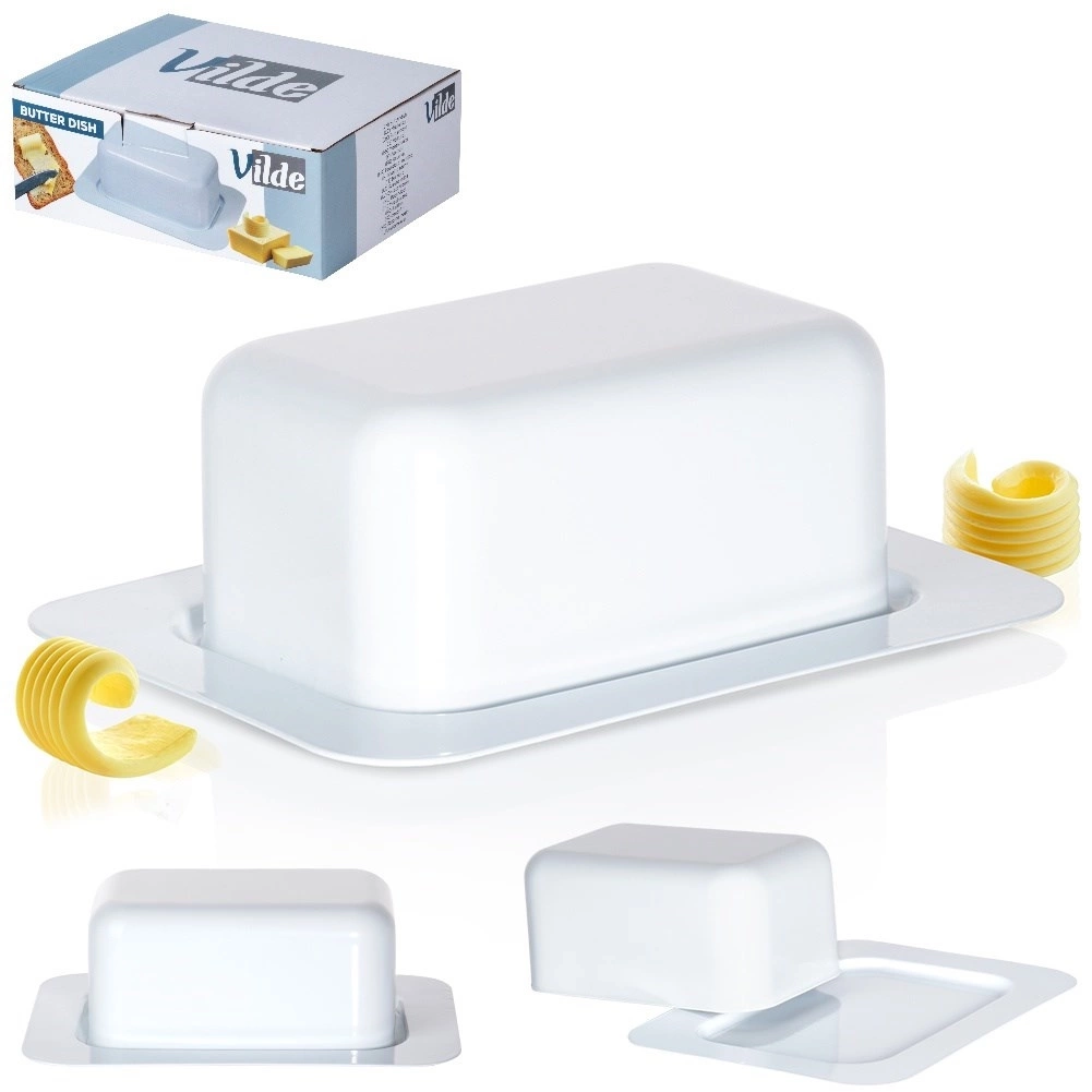 Przydatna maselniczka, która sprawdzi się do przechowywania oraz serwowania masła. Posiada praktyczne przykrycie. Wykonana z materiałów bezpiecznych dla zdrowia i neutralnych dla żywności. Klasyczny wzór sprawi, że będzie pięknie prezentować się z każdą zastawą stołową. Przydatna w każdym domu. Oryginalny produkt marki Vilde. Wyprodukowano zgodnie z europejskimi standardami.