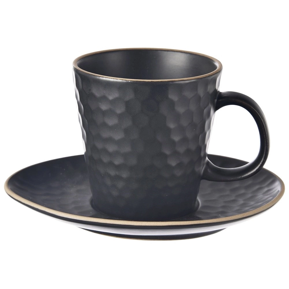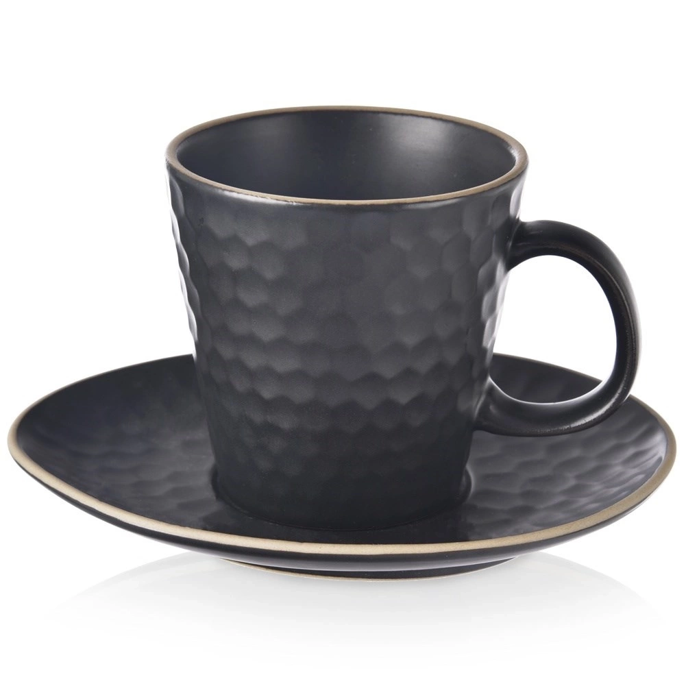 - Wykonana z kamionki - Wykonana z wysokiej jakości kamionki w kolorze czarnym. Zewnętrzny dekor filiżanki i talerzyka przypomina plaster miodu. Odpowiednio użytkowana posłuży długie lata.