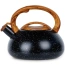 - Czajnik wykonany ze stali nierdzewnej - Klasyczny czajnik wykonany z najwyższej jakości stali nierdzewnej. Utrzymany w czarnym kolorze z nakrapianą, białą powierzchnią, która swoim wyglądem imituje granit. Stal nierdzewna jest trwała oraz neutralna dla podgrzewanej wody, nie wpływa w żaden sposób na jej właściwości. Posiada automatyczny gwizdek oraz zdejmowaną pokrywkę. Czajnik ma pojemność całkowitą 3 l oraz wysokość 19 cm, pojemność użytkowa wynosi 2,3 l.