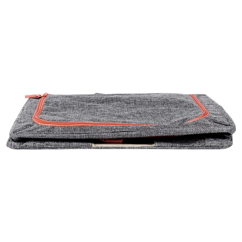 • Wysoka jakość materiału - Pokrowiec wykonany z wytrzymałej tkaniny poliestrowej w melanżowym, szarym kolorze. Zamek jest w kolorze łososiowym.