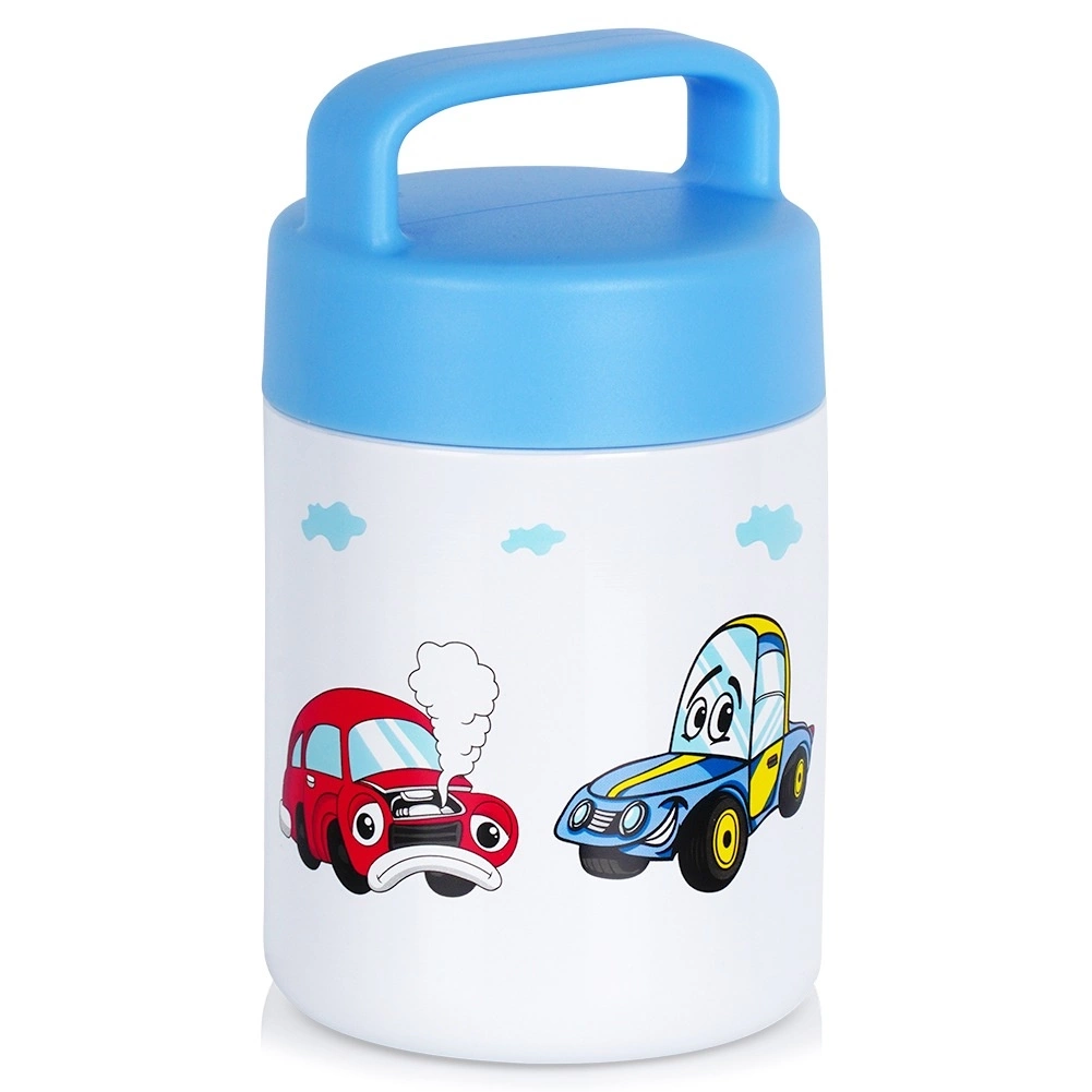 - Wykonany ze stali nierdzewnej - Termos wykonany jest ze stali nierdzewnej, a jego zewnętrzna część ozdobiona jest efektownym motywem autka, co czyni go idealnym dla dzieci. Pokrywka wykonana z tworzywa w niebieskim kolorze.