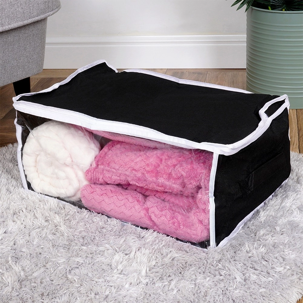 - Praktyczny pokrowiec na pościel - Praktyczny pokrowiec na pościel, koce, poduszki oraz ubrania. Chroni pościel przed zawilgoceniem, kurzem, molami i innymi czynnikami zewnętrznymi. Pokrowiec zapewni wygodne przechowywanie rzeczy w szafie lub pod łóżkiem. Pokrowiec ma wymiary 45 x 30 x 20 cm i pojemność 27 l.