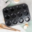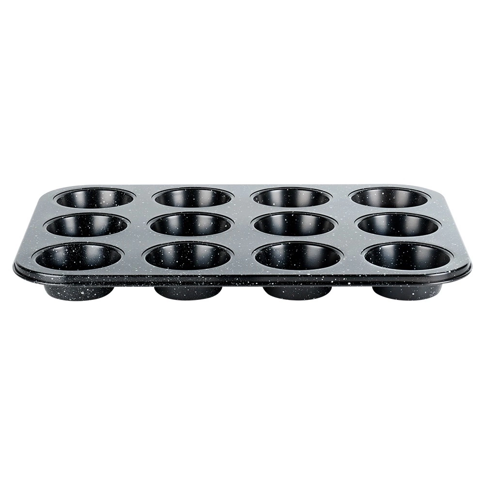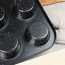 - Forma do pieczenia muffinek- Prostokątna forma do muffinek. Wymiary zewnętrzne formy: 35 x 26,5 x 3 cm. Górna średnica jednego otworu na muffinkę wynosi 6,5 cm. Dzięki formie przygotujemy jednocześnie 12 sztuk muffinek.