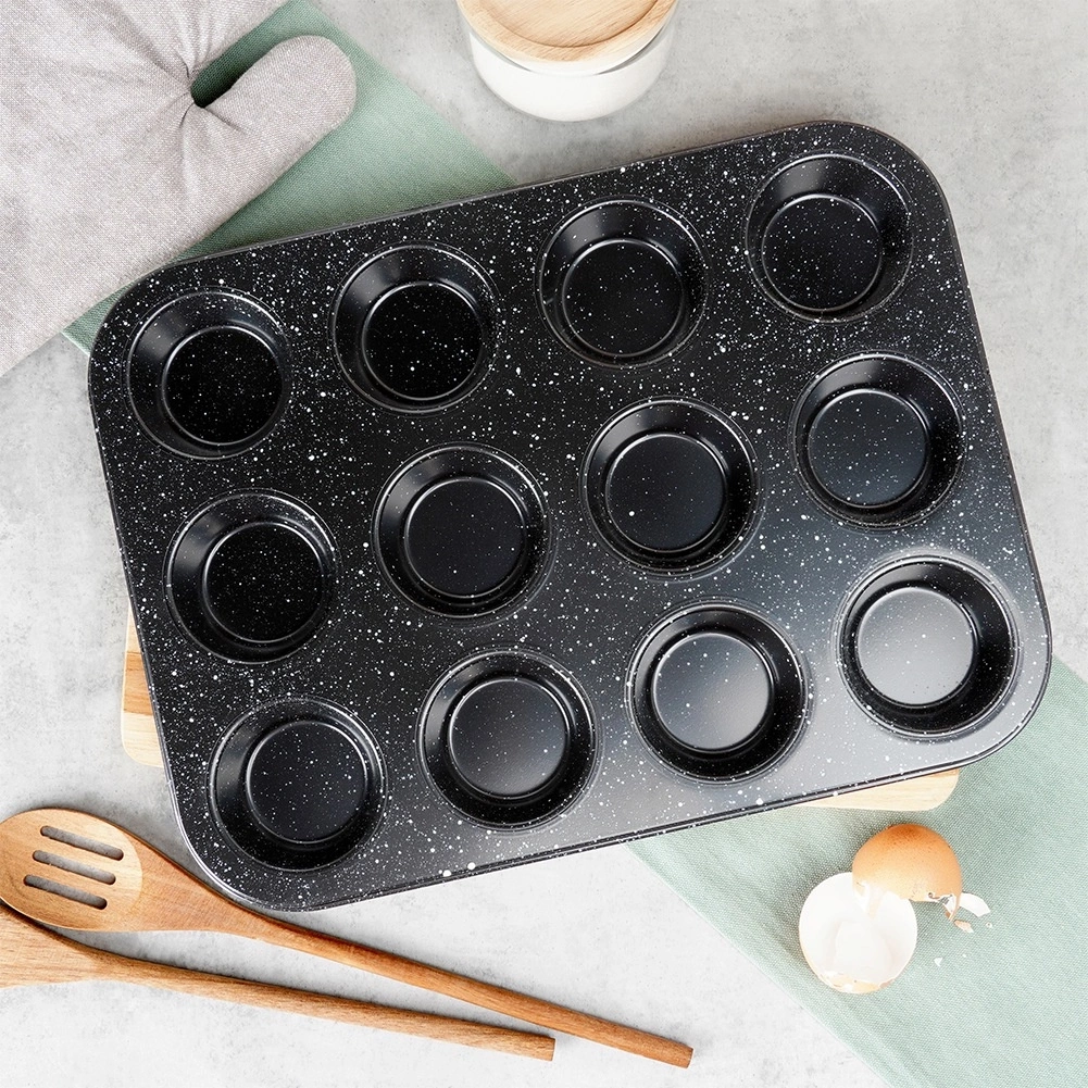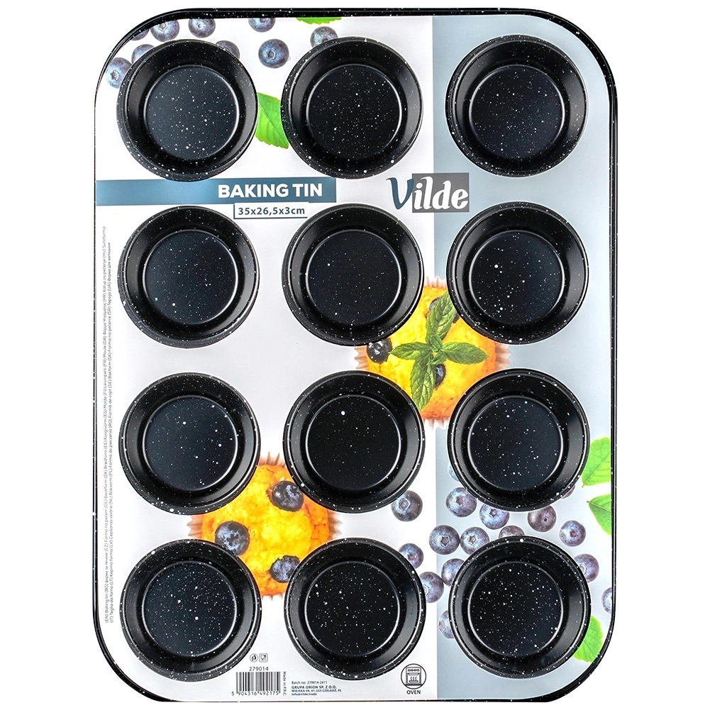Forma do pieczenia 12 szt. muffinek. Sprawdzi się do przygotowania muffinek, babeczek, ciastek czy innych deserów. Przydatna w każdym domu, jest łatwa w czyszczeniu i wygodna w użytkowaniu. Wykonana z materiałów bezpiecznych dla zdrowia i neutralnych dla żywności. Oryginalny produkt marki Vilde. Wyprodukowano zgodnie z europejskimi standardami.